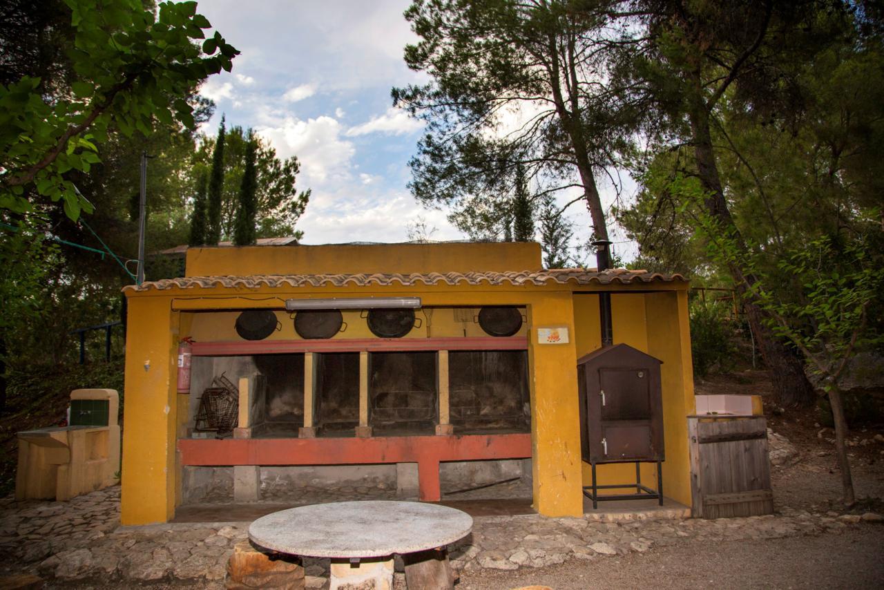 La zona de las barbacoas consta de 5 apartados con parrillas, paelleras y trípodes. Además de un horno de leña. Su uso está permitido entre el 1 octubre y el 30 abril. El combustible puede ser leña procedente de la poda de los propios pinos que allí se encuentran o el carbón que cada cual traiga consigo.