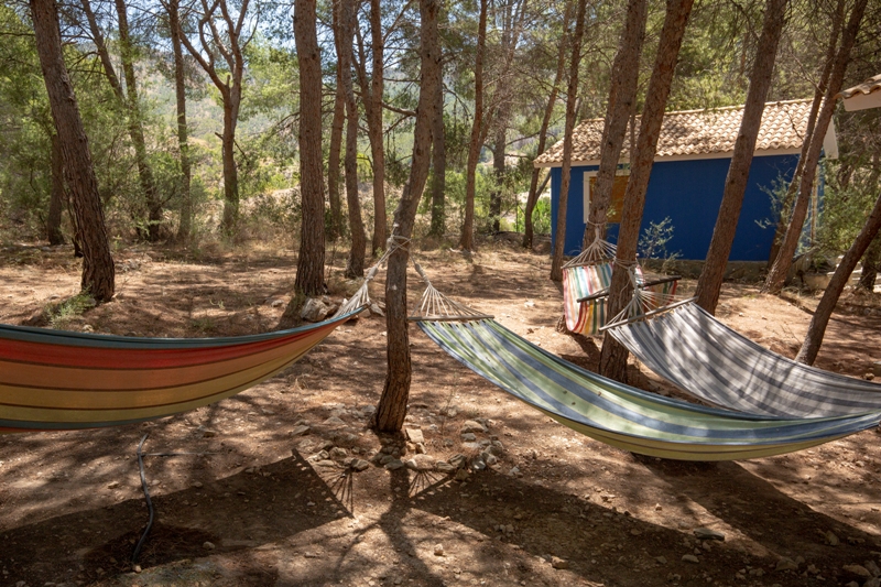 Disponemos de hamacas colgantes alrededor de las casas para el descanso de los huéspedes. Así como mesas con bancos al lado de cada una de ellas.