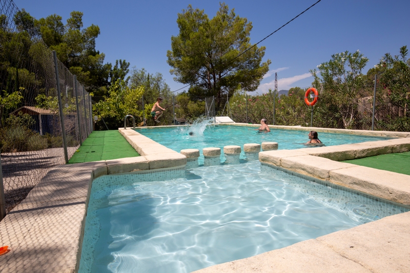 La piscina está cercada para mayor seguridad. Cuenta con dos zonas diferenciadas: la pequeña de niños, que no cubre, y la grande. Tiene horario de día y permanece cerrada por la noche.